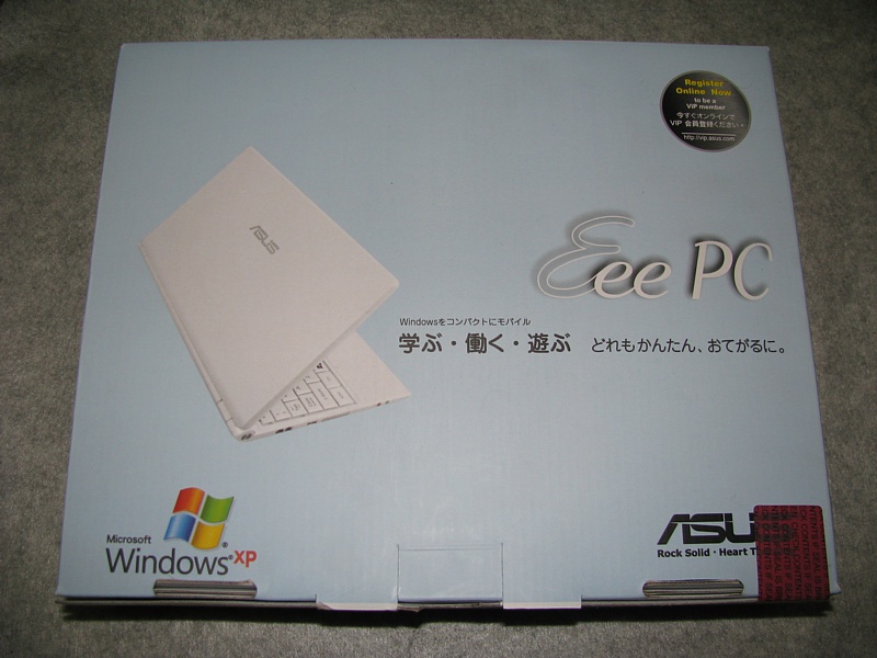今日は秋葉原に「DIY PC Expo 2008」の見学に行ってきたのですが、イベント会場ではない某所で先日発売が開始されたばかりのASUS製モバイルノートPC『Eee PC』が無造作に置かれているのを発見してしまいました。その結果がこれです。