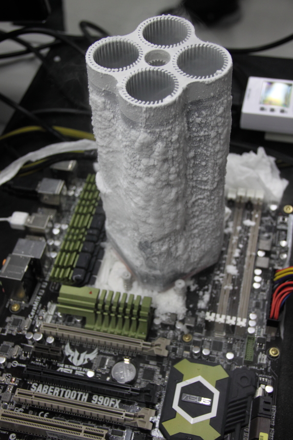 通電してからわずか三時間ほどの短い生涯で、8GHzに到達するという夢も叶いませんでしたが、T-Shooterを使った極冷としては最高クロックとなる7.79GHzを記録し、外す際にも見事なスッポンを披露してくれたことは良い思い出になりました。