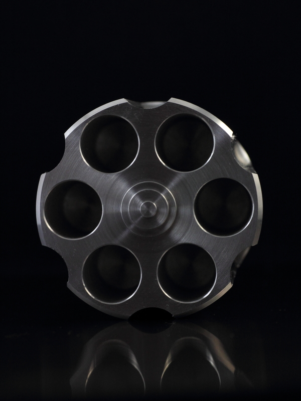 なんとなくT-Shooterっぽい感じのするこの円筒状の物体は、fu-biの『リボルバーペンスタンド』という商品です。CPUを冷やせるペン立てなどとも呼ばれる『T-Shooter』をモチーフにした…わけではなく、回転式拳銃(リボルバー)の弾倉型ペンスタンドです。こちらは正真正銘のペン立てという訳ですね。