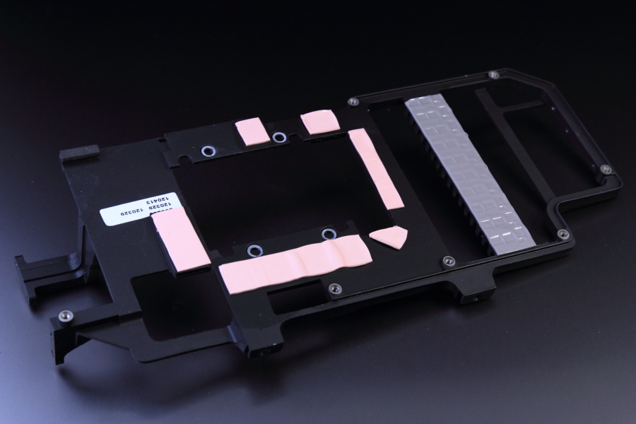 ダイレクトタッチ仕様のベースユニットを持つGPUクーラーを採用しているにも関わらず、そのベースユニットに銅板を接合して非ダイレクトタッチ化した『HD7970-DC2-3GD5』のGPUクーラー。何故こんなことになっているのかというと、AMD Radeon HD 7900 シリーズGPUが備える保護プレート(?)との干渉を回避するためです。