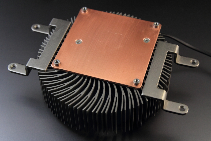 GPUクーラーも銅板にIntelのリテールクーラーのようなヒートシンクを接合したような簡単なものであり、メモリチップや電源回路冷却用のヒートシンクは用意されていません。かなりシンプルで安っぽい冷却機構ですが、見かたを変えれば、IceQ系のGPUクーラーを搭載する製品とはキッチリ差別化された製品であるとも言えます。